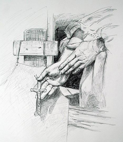Praying Hands, charcoal on paper. An original charcoal portrait. Please contact the
