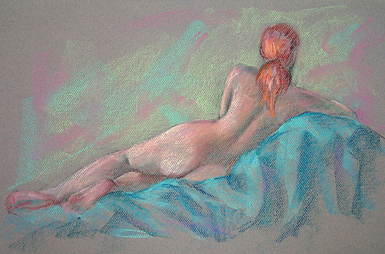 Sitting Blue, pastel on paper. Please contact the artist at dave@a-portrait-place.com to order prints or to inquire about original paintings. Commissions considered.