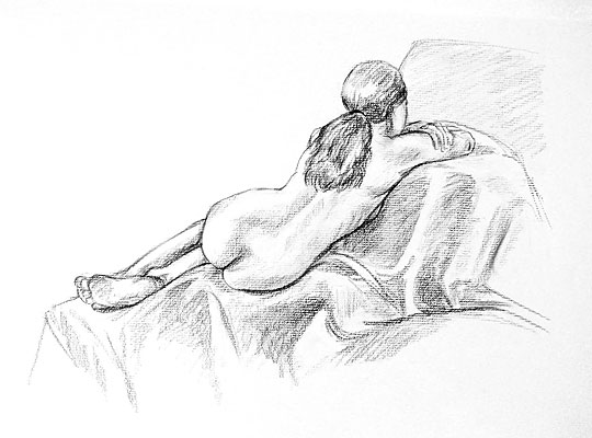 Nude Backside, charcoal on paper. Please contact the
