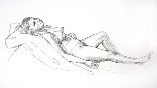 Reclining Nude #10, charcoal on paper. Please contact the