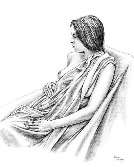 Nude Sitting In Chair, charcoal on paper. Please contact the