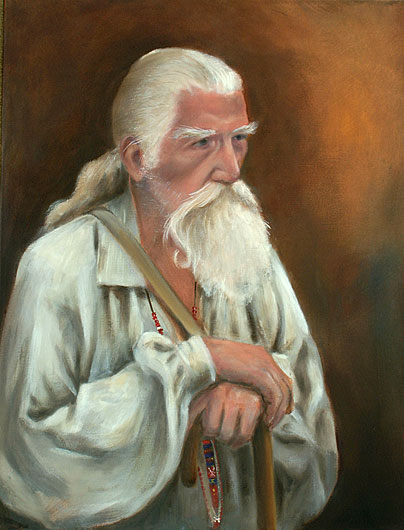 oil painting of an American living history reenactor. The portrait was painted from a photograph taken at Old Fort Niagara during a reenactment of the French and Indian War. Please contact the