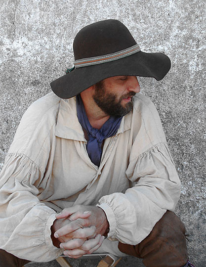 photo of a living history re-enactor. The image was taken at Old Fort Niagara in Youngstown, New York. Please contact the