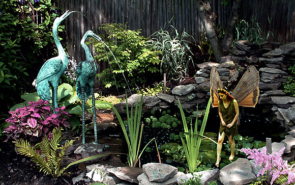 original fairy photograph. A fairy dips her toes into the water at the Buffalo Botannical Gardens. Please